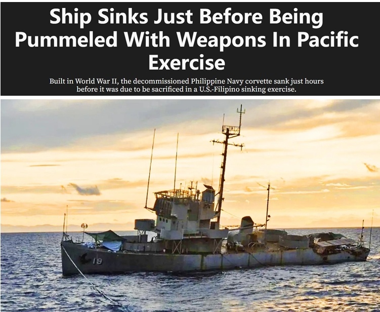 在作秀过程中,菲律宾海军想要利用老旧的护卫舰进行演习,这种护卫舰吨位非常小,是二战期间遗留下来的装备。当时菲军也没有认真了解海况,气象信息掌握得不充分,结果靶船自己沉没了。该事件对于实战化演习肯定会产生负面影响。