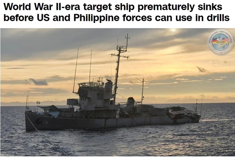 在近日举行的美菲“肩并肩”2025联合军演期间,菲律宾使用一艘退役护卫舰充当靶船,供演习部队演练对海打击,但这艘靶船还未抵达其预定位置,就在途中沉没。